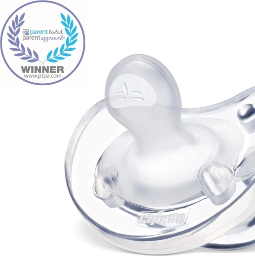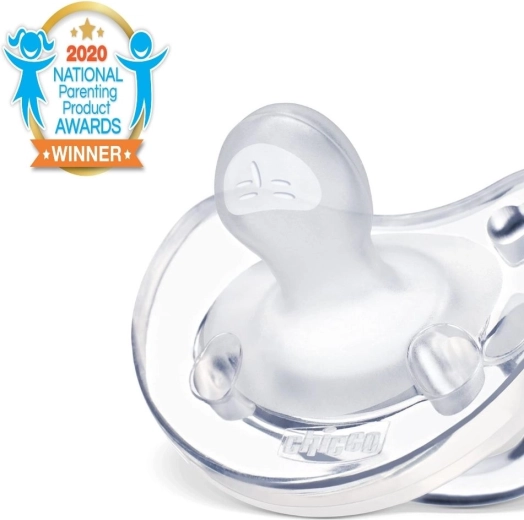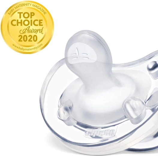 De CHICCO Physio Soft fopspeen uit de Physioforma-lijn is gemaakt uit één stuk 100% hygiënisch siliconen, zonder storende naden en daardoor uitzonderlijk zacht en vriendelijk voor de gevoelige huid. De ergonomische en orthodontische vorm helpt de tong correct richting gehemelte te plaatsen, wat fysiologisch neusademen bevordert en bijdraagt aan de juiste ontwikkeling van kaak en gebit.