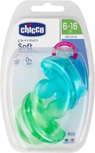 De volledig siliconen CHICCO Physio Soft fopspeen is een zachte, hygiënische en orthodontische fopspeen uit één stuk siliconen met een zijdezachte afwerking. De ergonomische vorm ondersteunt correct neusademen, de natuurlijke positie van de tong en een gezonde kaakontwikkeling. Geschikt voor de leeftijd 6–16 maanden, BPA-vrij, verpakking 2 stuks – ideaal ook voor tijdens het slapen.