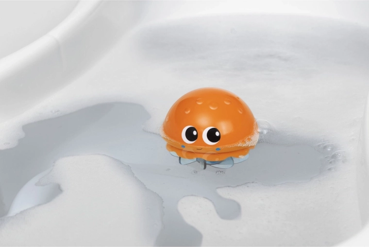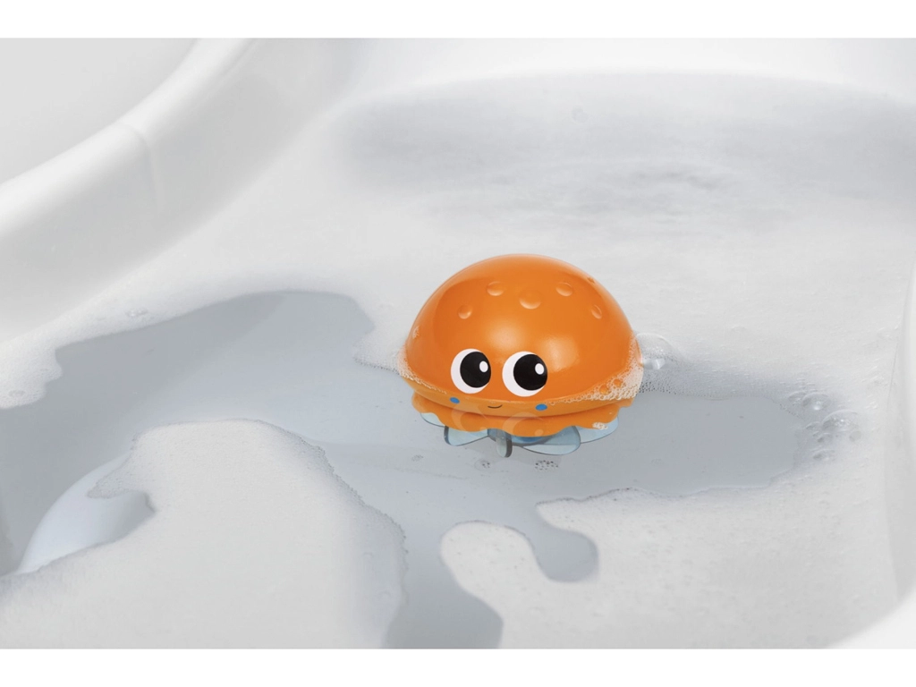 Ontdek waterpret met een kwal die elk badmoment in een vrolijke belevenis verandert. Dankzij de intuïtieve vorm is hij makkelijk vast te pakken en de eenvoudige mechanische functie van het draaien van de tentakels zorgt in het water voor een boeiende dans. Het speeltje ondersteunt de fijne motoriek, hand-oogcoördinatie en het begrip van oorzaak en gevolg.