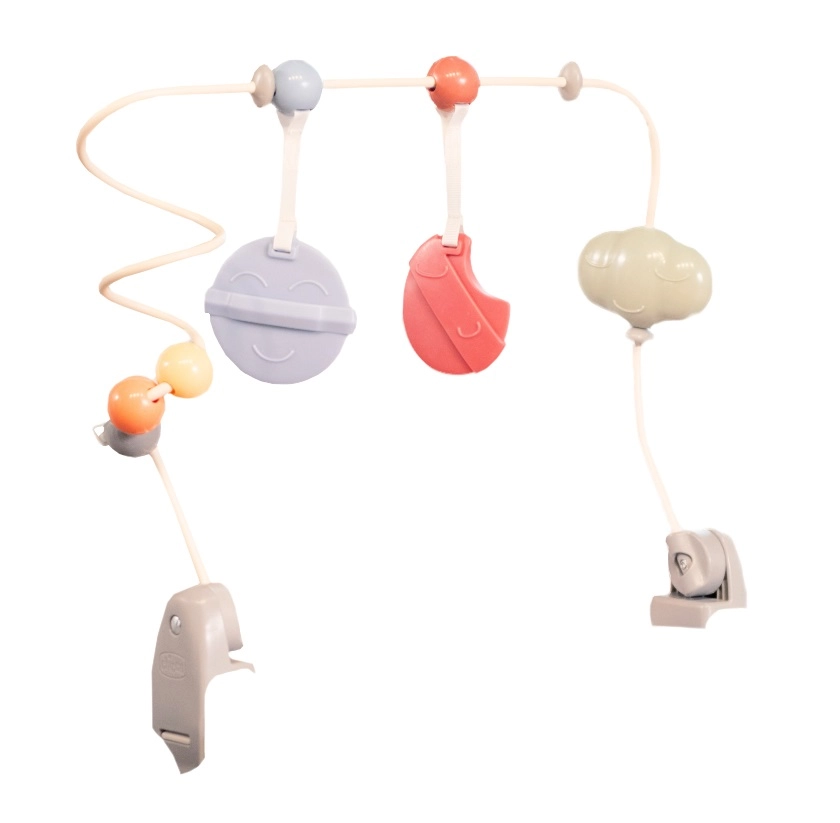 - Verschuifbare kralen, zachte afneembare hangers/bijtspeeltje, 360° draaibaar wolkje met geluid