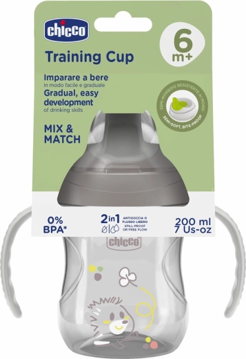 Maak de overgang van fles naar beker eenvoudiger met de CHICCO Training. De halfzachte tuit is gevormd voor de juiste plaatsing van de lippen en ondersteunt een optimale nekpositie tijdens het drinken. Afneembare ergonomische handgrepen en een body met zachte uitsparing voor de neus zorgen voor comfortabel vasthouden, zelfs voor de allerkleinste handjes.