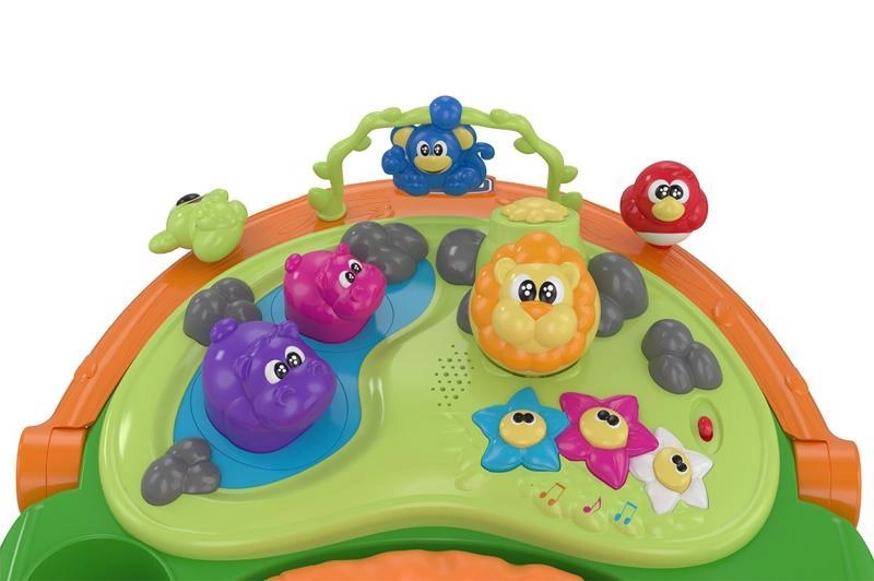 Het geïntegreerde activiteitenspeelpaneel ondersteunt de ontwikkeling van de fijne motoriek en zintuiglijke waarneming. De zachte, comfortabele zitting en het compacte opvouwen maken opbergen en vervoer eenvoudig. Bekerhouders aan beide zijden zorgen voor extra gemak tijdens langer spelen en ontdekken.