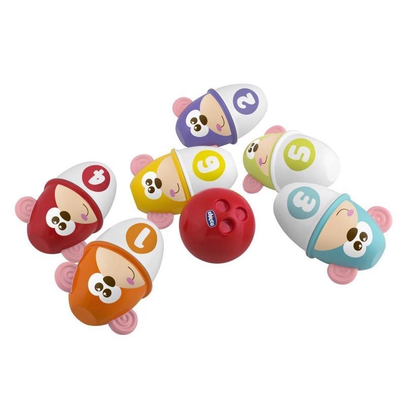 De Chicco-set Vrolijke aapjes biedt kinderen vanaf 18 maanden hun eerste bowlingervaringen. Kegels in levendige kleuren nodigen uit tot spelen, leren kinderen nauwkeurig werpen en ondersteunen de natuurlijke ontwikkeling van balans. Elke kegel kan eenvoudig in twee delen worden gesplitst, zodat kinderen hun eigen banen, tunnels en hindernisroutes kunnen creëren.