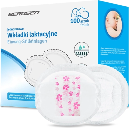 Ultra-absorberende BERDSEN zoogkompressen voor de borstvoedingsperiode bieden betrouwbare bescherming tegen doorlekken, een langdurig droog gevoel en maximaal comfort. Dankzij de ademende lagen en zelfklevende stroken blijven ze op hun plaats, beschermen ze kleding en zijn ze zacht voor de gevoelige huid.