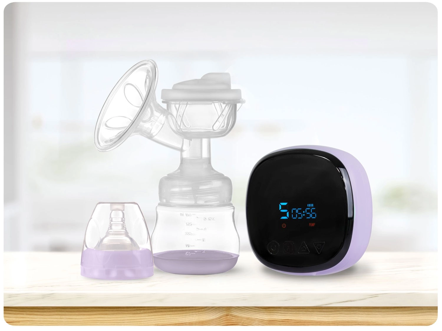 Dankzij het intuitieve bedieningspaneel met LCD kies je de modus (stimulatie, massage, diep kolven), pas je de intensiteit aan en controleer je de batterijstatus. De kolf is zeer stil, gemakkelijk te demonteren en schoon te maken. Hij is BPA-vrij voor maximale veiligheid van je baby. In de doos vind je een fles van 150 ml, een speen, een voedingsadapter en 2 steriele zakjes voor melk met schroefdoppen.