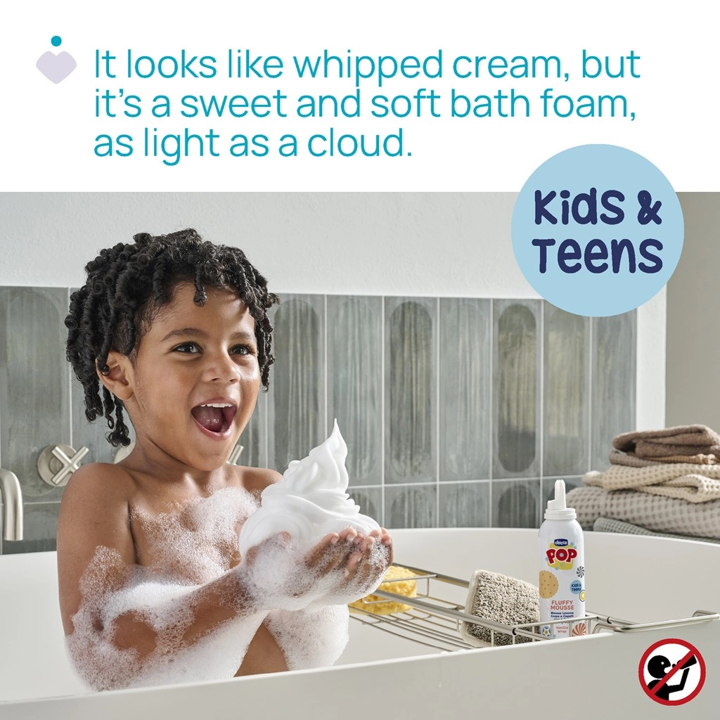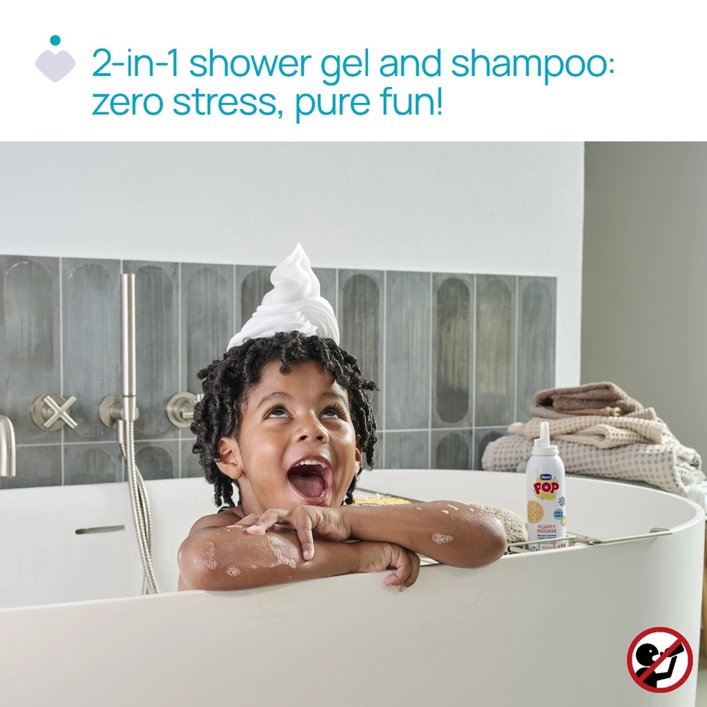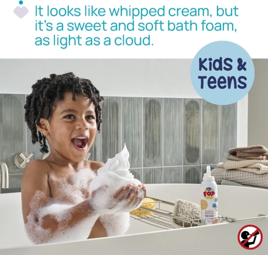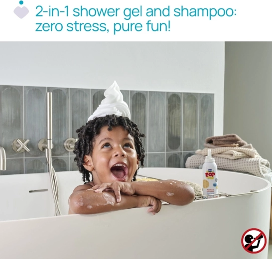 Maak van baden een feestje! Chicco Pop Vanilla is een luchtige 2-in-1 schuim voor lichaam en haar met een heerlijke vanillegeur. Heeft een zachte, romige textuur die aan slagroom doet denken, is vegan en dermatologisch en oftalmologisch getest voor de gevoelige huid van kinderen en tieners.