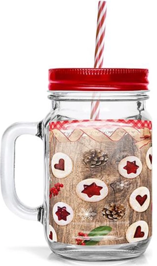 Stijlvol glas met oor en een schroefbaar metalen deksel met afdichting voor zorgeloos drinken thuis en in de tuin. Het biedt een inhoud van 450 ml, heeft een praktisch oor en een originele kerstprint met Linzer koekjes die plezier brengt in de adventstijd en het hele jaar door. Dankzij het deksel lokt de drank geen insecten en lekt hij niet wanneer hij omvalt.