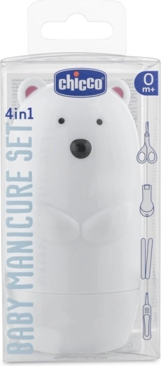 De CHICCO manicure set voor de allerkleinsten is ontworpen met maximale veiligheid en comfort in gedachten. De schattige draagbare etui in ijsbeerdesign houdt alles bij elkaar en past dankzij het compacte formaat gemakkelijk in de luiertas.
