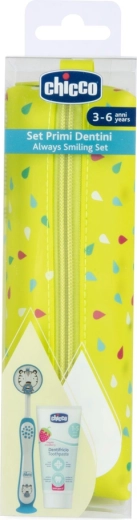 Praktische reisset van het merk CHICCO voor kinderen vanaf 3 jaar, met een combinatie van een tandenborstel voor melktanden, een kinder-tandpasta met aardbeiensmaak en een gekleurde beker in een schattige etui. Dankzij de smalle borstelkop, de ergonomische antisliphandgreep en de pasta met xylitol en bio-calcium helpt de set een prettige en veilige dagelijkse poetsroutine te creëren, thuis en onderweg.