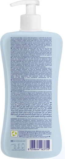 Chicco Natural Sensation is een cosmeticalijn geïnspireerd op de natuurlijke bescherming van de babyhuid. De lichaamsmelk is dermatologisch en pediatrisch getest en geschikt voor baby’s vanaf de geboorte. De combinatie van sheaboter voor herstel van de huidbarrière en vitamine E voor kalmering en bescherming voedt effectief ook de droge en gevoelige huid.