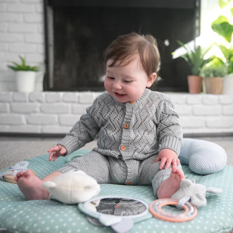 De mat is gemaakt voor dagelijks gebruik: eenvoudig te onderhouden, machinewasbaar, de gyms zijn afneembaar en de set vouwt snel op dankzij Slim Fold – ideaal om op te bergen en mee te nemen. Inclusief een zacht ondersteunend kussentje voor comfortabel tummy time.