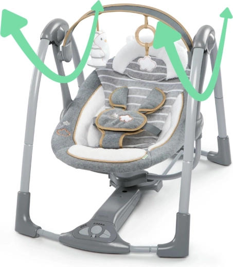 De schommel is eenvoudig op te vouwen tot een compact formaat voor vervoer of opslag en dankzij de stabiele constructie kun je er comfortabel mee reizen. Plaats eenvoudig 4 D-batterijen en geniet van rustige momenten thuis en onderweg.