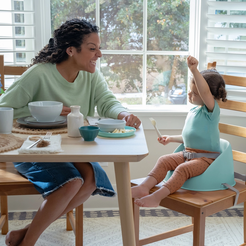 De Ingenuity My Spot zitverhoger in teal helpt kinderen soepel over te stappen van de kinderstoel naar samen aan tafel eten. De ergonomisch gevormde kuip met hogere rugleuning ondersteunt een juiste zithouding, terwijl de 3-puntsgordel je kind veilig houdt. Dankzij de compacte afmetingen en het lage gewicht neem je hem gemakkelijk mee tussen kamers en op uitstapjes.