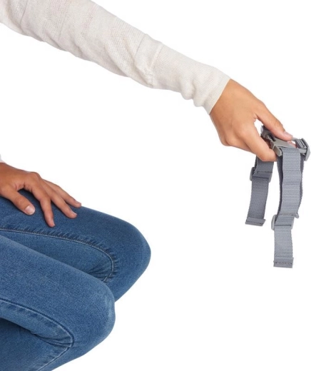 De zitverhoger bevestig je eenvoudig met verstelbare riemen en gespen. De stabiliteit op de stoel minimaliseert verschuiven en zorgt voor veilig zitten aan tafel.