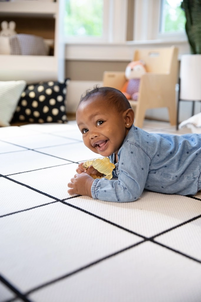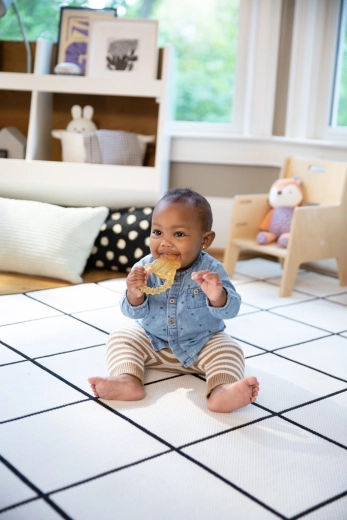 De ergonomische ring is ontworpen voor kleine kinderhandjes, zodat je baby de bijtring veilig kan vasthouden en zichzelf kan kalmeren.