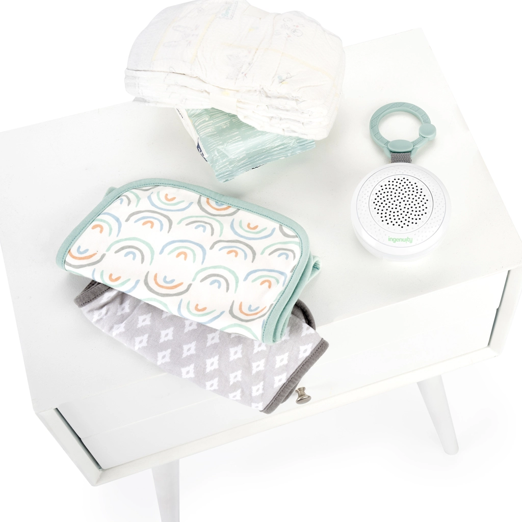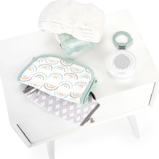 Houd je baby rustig, thuis en onderweg, met de compacte speler INGENUITY Pock‑a‑Bye Baby. Biedt 10 melodieën, witte ruis, geluiden van de oceaan en een beekje, handig Bluetooth-verbinding, een timer van 30/60/90 min en USB-opladen. Dankzij het lichte ontwerp en de afneembare clip bevestig je hem eenvoudig aan een kinderwagen, autostoeltje of luiertas.