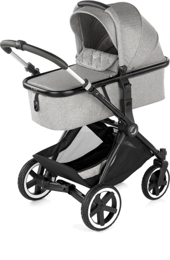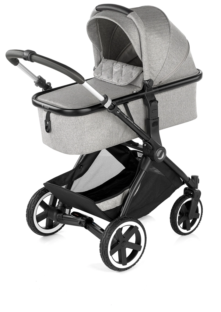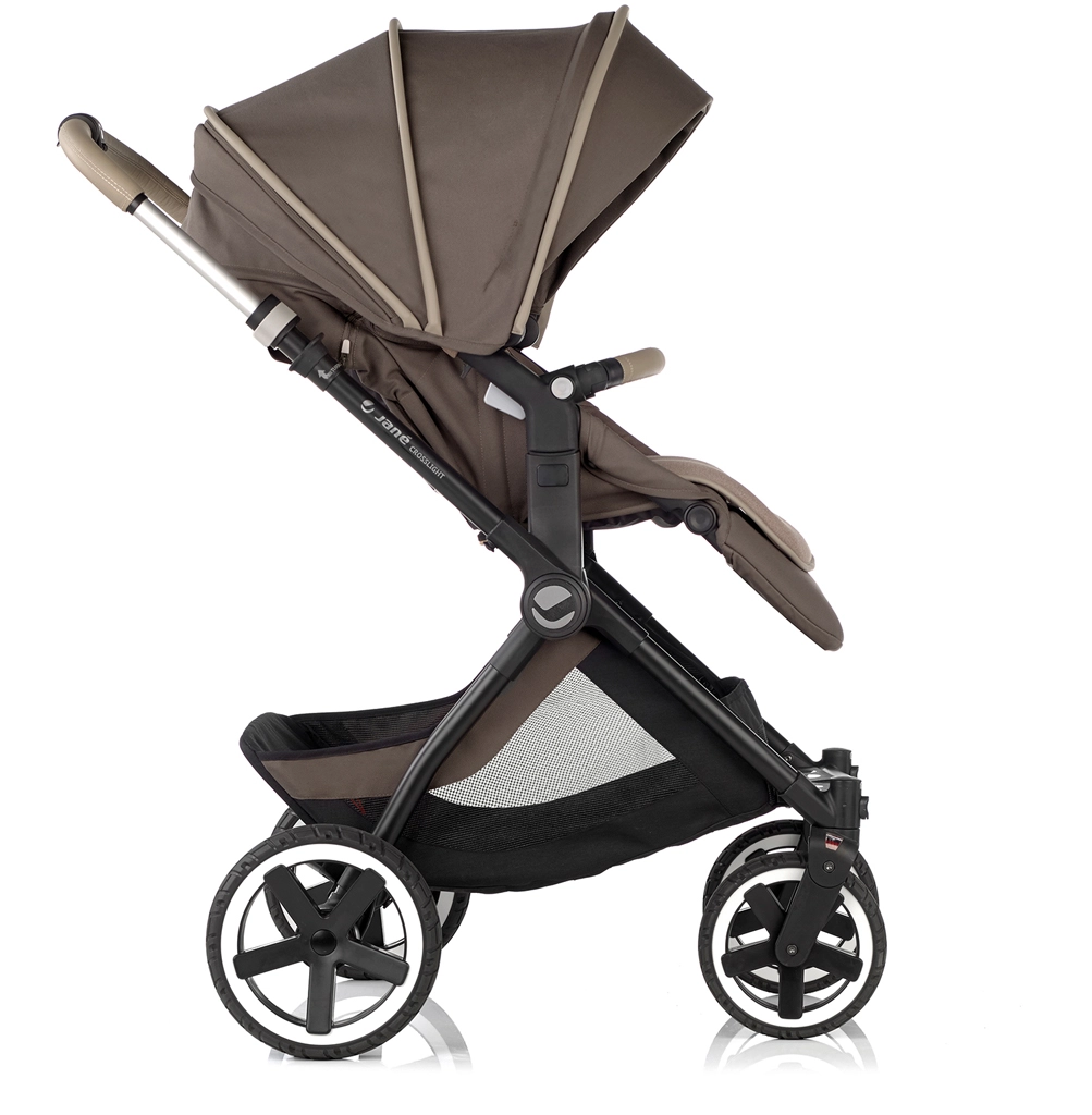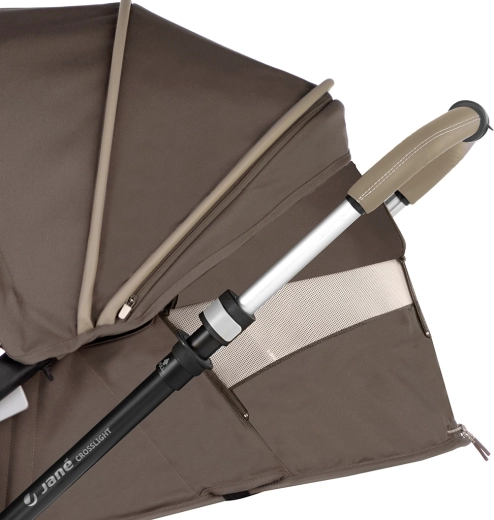 De Jané Crosslight 3-in-1 set combineert het comfort van pasgeborene tot peuter in één pakket. Het lichte aluminium onderstel met voor- en achtervering en hydro PU-banden kan zowel stadsstoepen als onverharde paden aan. Compact opvouwen, een in hoogte verstelbare telescopische duwbeugel en een extra grote mand maken de Crosslight tot een praktische partner voor elke dag.