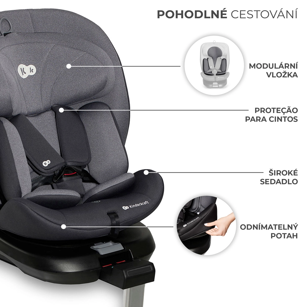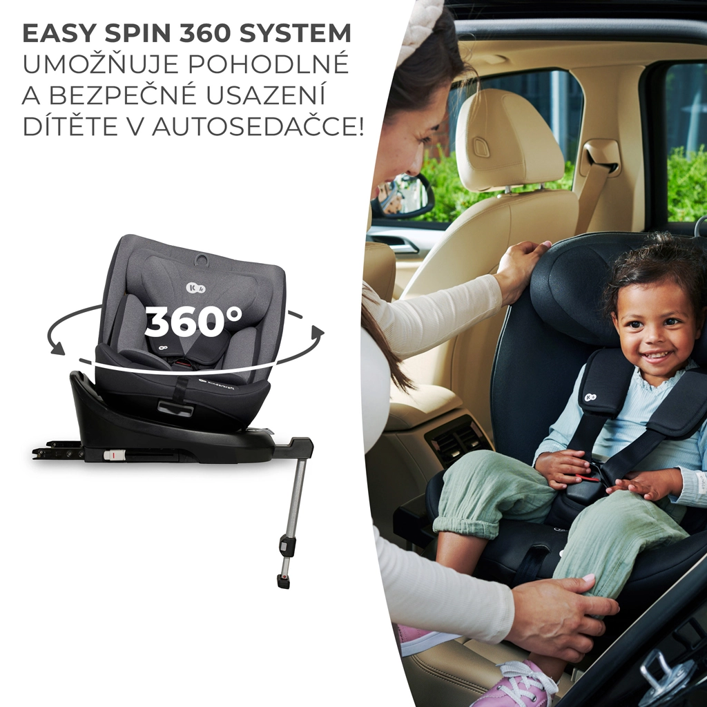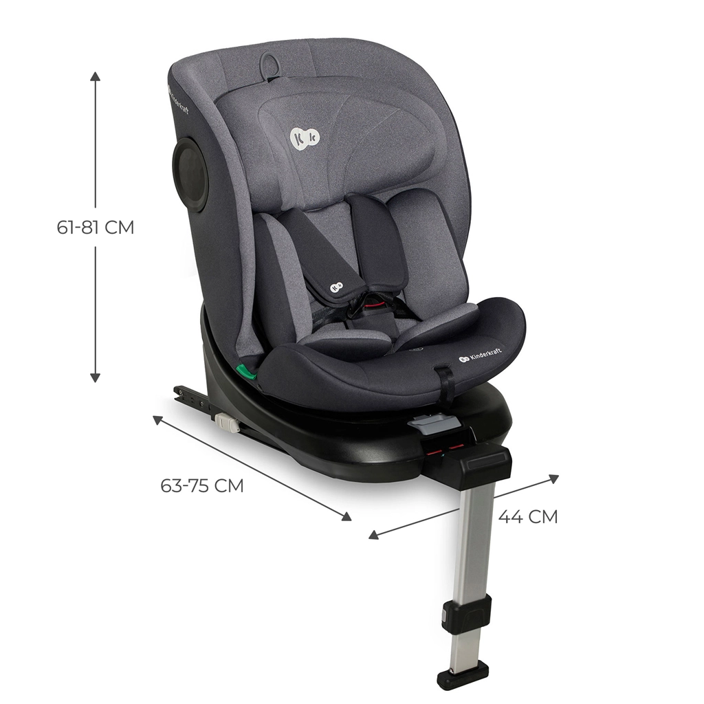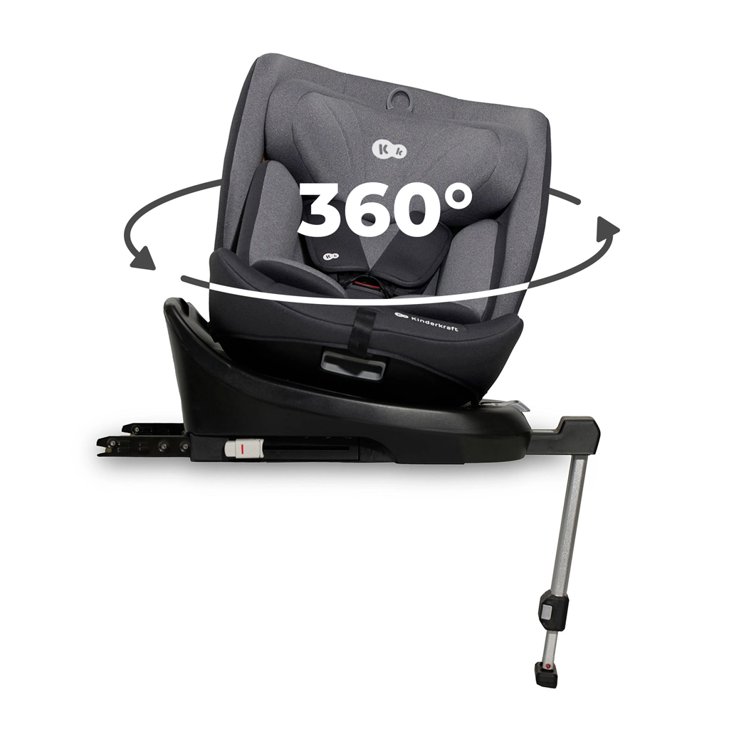 Het draaibare autostoeltje KINDERKRAFT I-360 i-Size voor een kinderlengte van 40–150 cm biedt maximale veiligheid en comfort vanaf de geboorte tot ca. 12 jaar. Het biedt RWF tot 4 jaar, een 360° draaisysteem voor eenvoudig in- en uitstappen, ISOFIX met indicatie van correcte installatie en een stabilisatiepoot. Extra bescherming dankzij H-GUARD en SIDE PROTECT SYSTEM+, terwijl de in 12 standen verstelbare hoofdsteun, 5 ligstanden en zachte inlays met traagschuim comfort garanderen op elke rit.