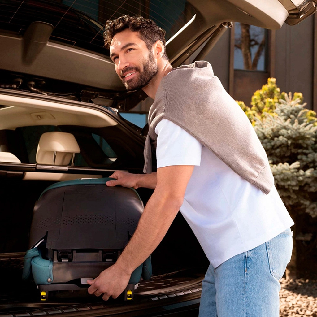 UNITY 2 i-Size vouw je eenvoudig op tot compacte afmetingen. Ideaal voor ouders die het autostoeltje vaak meenemen of ruimte in de kofferbak willen besparen.