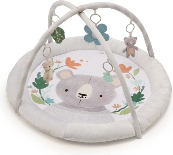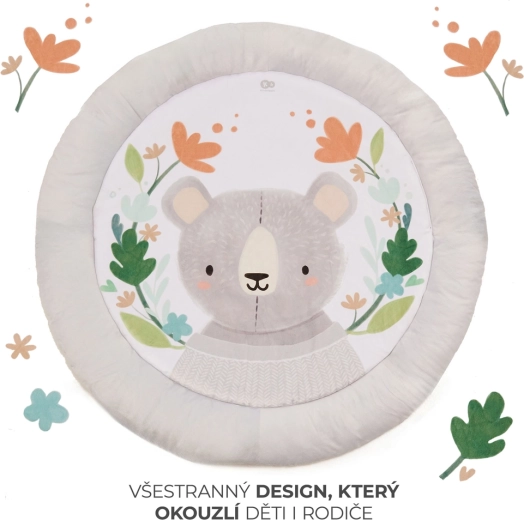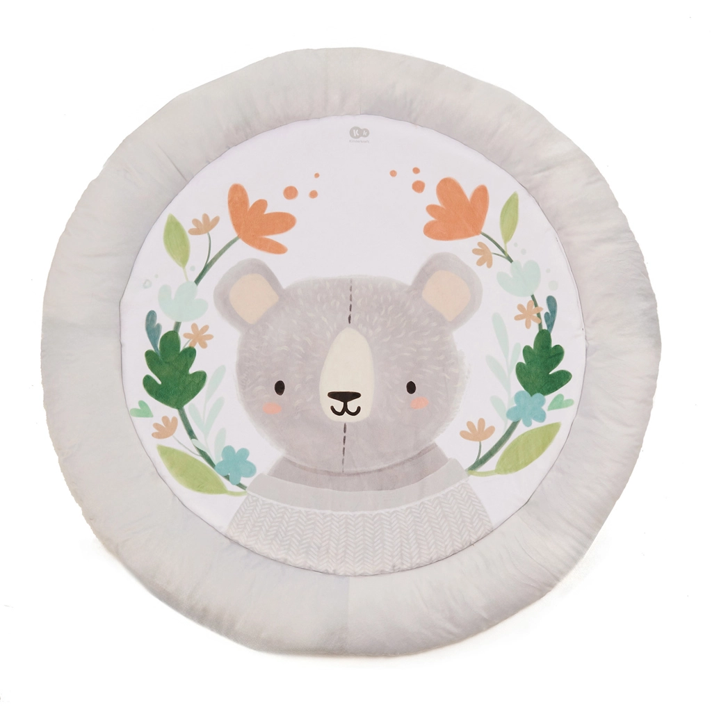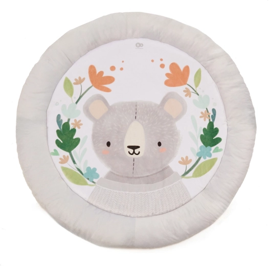 De comfortabel gewatteerde ronde mat met aangename materialen biedt je baby een knusse plek om te spelen en te rusten.