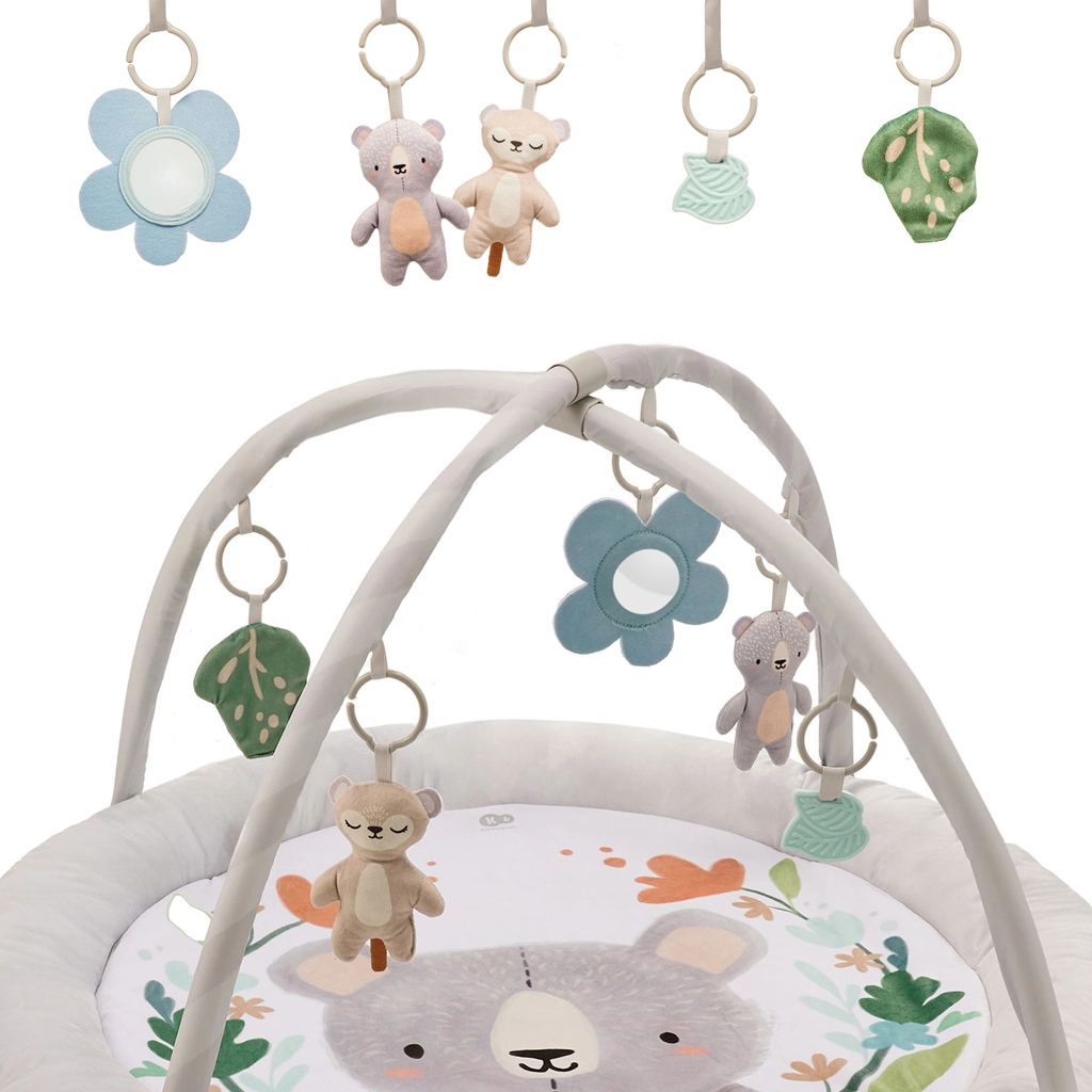 Het COZYPLAY speelkleed combineert comfort, veiligheid en design. Het ronde, rijk gevoerde oppervlak met illustraties van een Europese kunstenaar creëert een knusse plek voor buikligspel, de eerste grepen en ontspanning. Twee zachte bogen maken variabele ophanging van speeltjes mogelijk en zo ook het aanpassen van prikkels aan de leeftijd en vaardigheden van je baby.