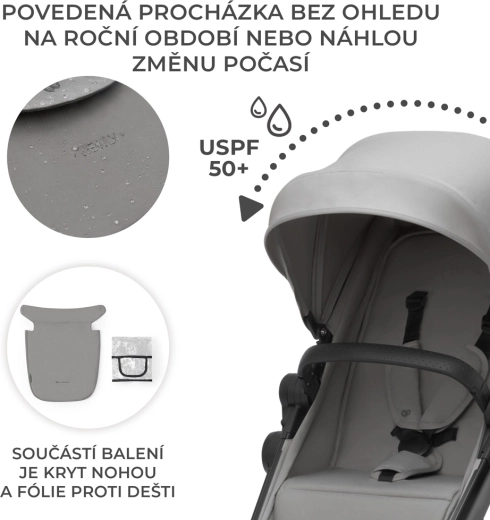 De set bevat de autostoel MINK PRO i-Size (40–75 cm) met ISOFIX-base en universele adapters, waarmee je de autostoel direct op het frame kunt bevestigen en zo een praktisch travel system creëert. De grote wielen zijn lekbestendig, hoeven niet te worden opgepompt en met vering kunnen ze zowel stadsstoepen als parkpaden aan. De royale kap met UPF50+ en waterafstotende afwerking beschermt tegen zon, wind en regen.