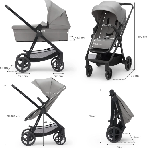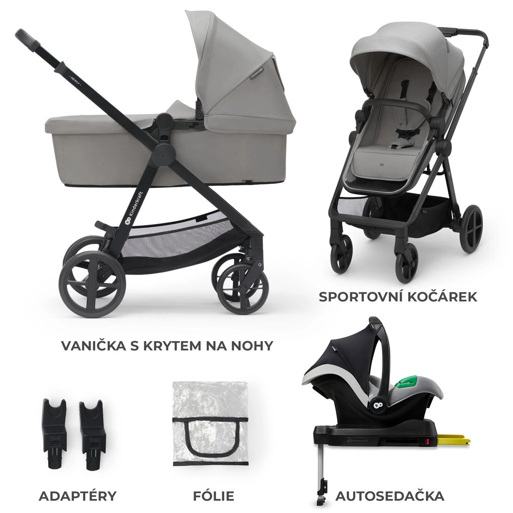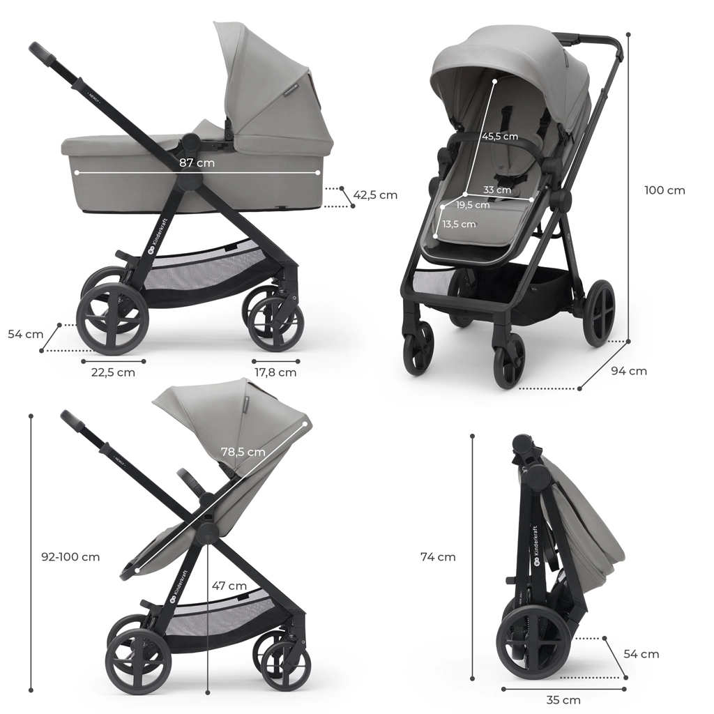 KINDERKRAFT Newly 4-in-1 is een veelzijdige kinderwagen vanaf de geboorte tot 22 kg, ideaal voor de stad en uitstapjes. Dankzij het gewicht van slechts 7,5 kg is hij makkelijk te dragen, eenvoudig in te klappen met gemonteerd zitje en neemt opgevouwen minimale ruimte in de kofferbak in. Het 2-in-1 zitje verander je snel van diepe wieg naar sportzitje, zowel met de rijrichting mee als tegen de rijrichting in.