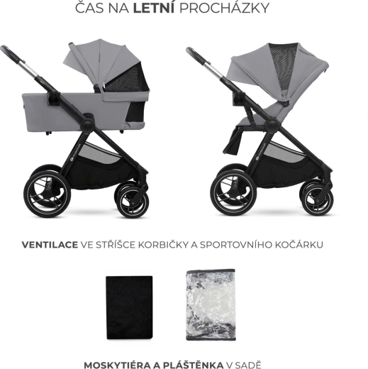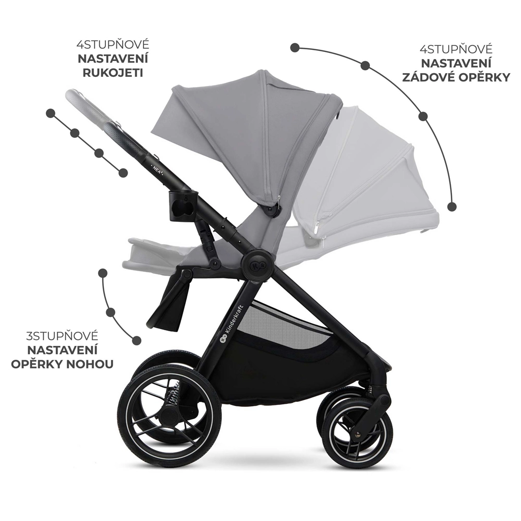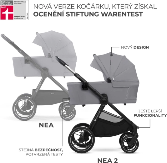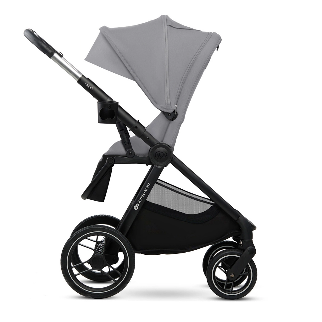 De KINDERKRAFT NEA 2 2-in-1 is een doordachte kinderwagen voor in de stad en daarbuiten. Grote, duurzame wielen met vering kunnen drempels en ongelijke wegen aan, terwijl het lichte frame en de telescopische duwbeugel comfortabel manoeuvreren mogelijk maken. De reiswieg met zacht matras is ideaal vanaf de geboorte, het peuterzitje groeit met het kind mee tot 22 kg. De kap met UPF50+ bescherming, waterdicht materiaal, ventilatiepaneel en kijkvenster beschermt en verhoogt het comfort tijdens elke wandeling.