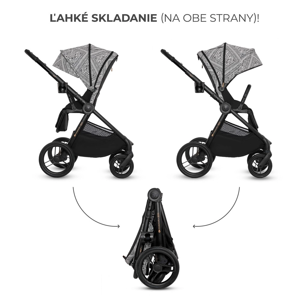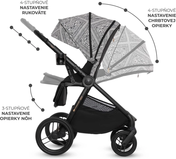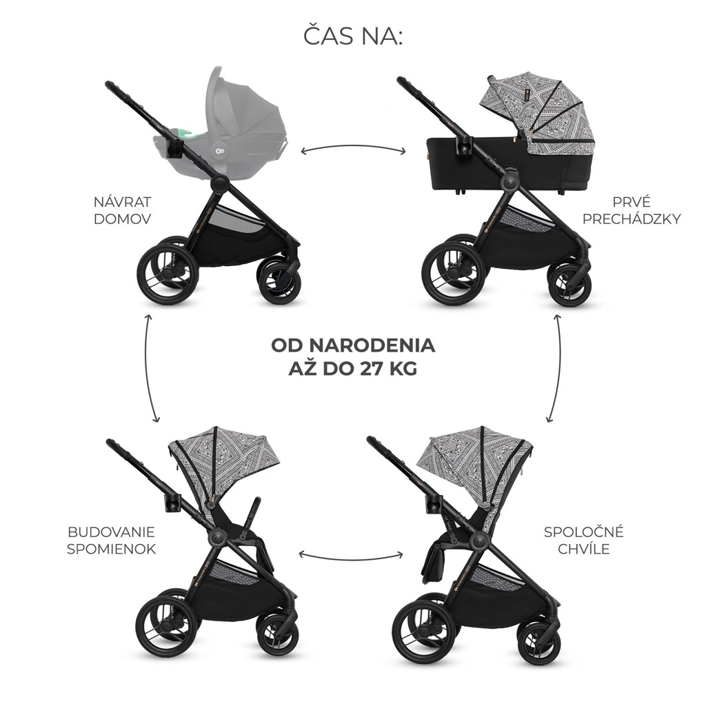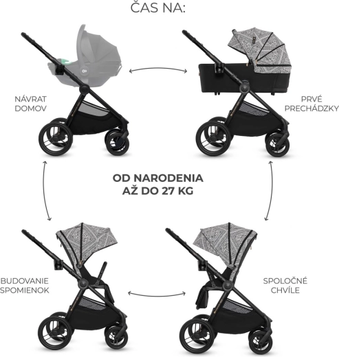 - 2-in-1 systeem: ruime wieg + sportzitje, beide met voor- en achterwaartse rijrichting.