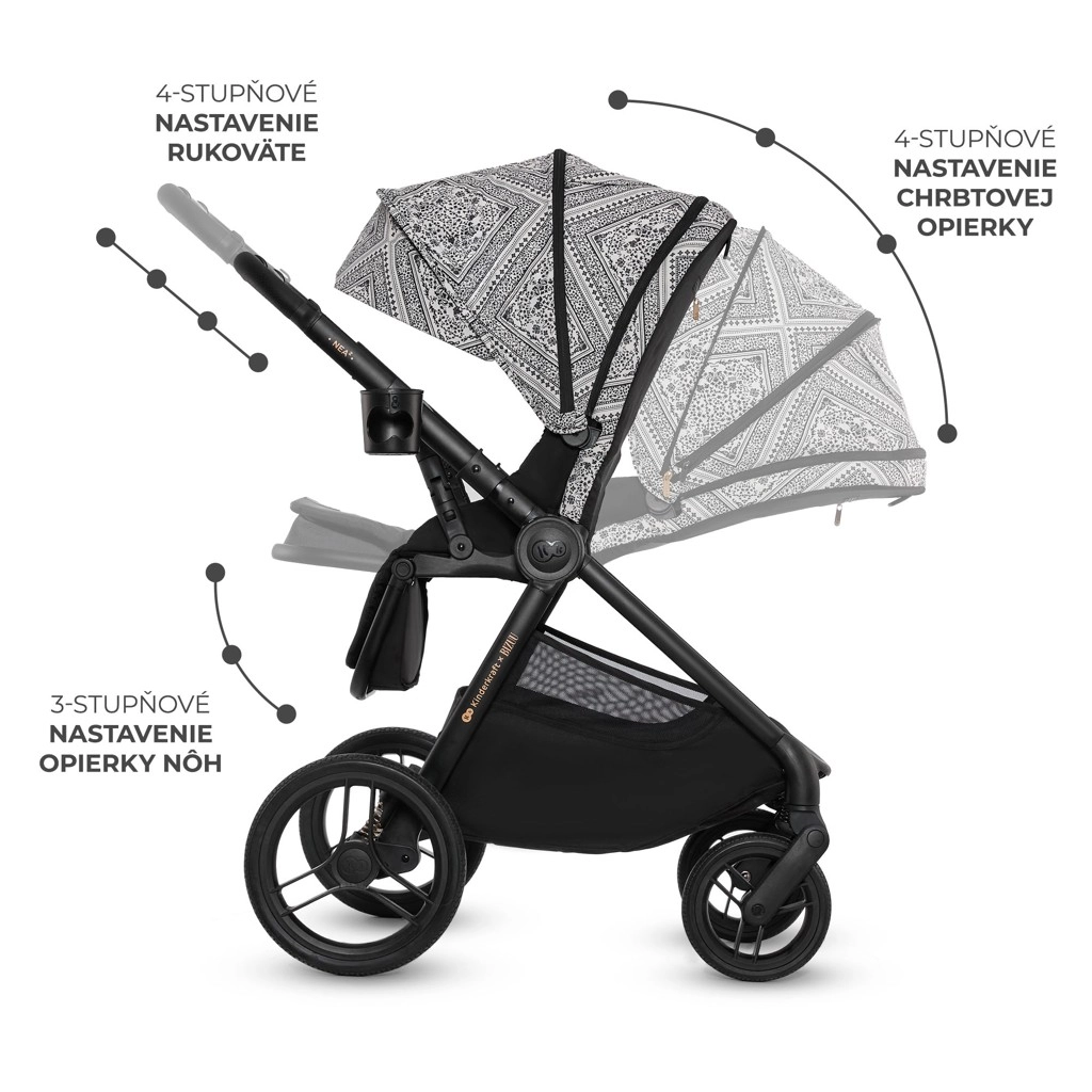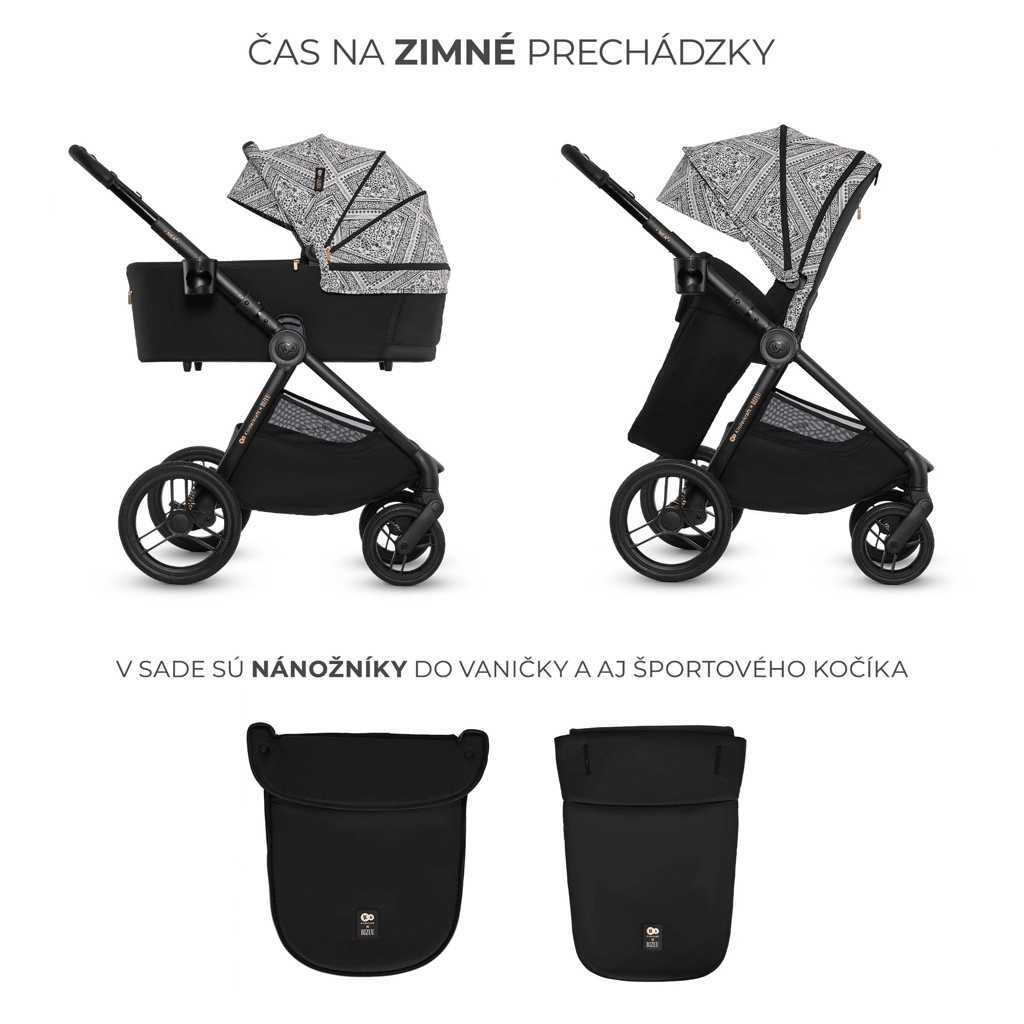 Stijlvolle en praktische kinderwagen NEA 2 2-in-1 uit de limited edition Bizuu combineert een compact design, grote onderhoudsvrije wielen voor de stad, een comfortabele wieg vanaf de geboorte en een sportzitje tot 22 kg. Biedt zitpositie in beide rijrichtingen, eenvoudig inklappen met AUTO LOCK-systeem, STOP & RIDE-rem, een uitgebreide set accessoires en een kap van waterdichte stof met UPF50+ voor bescherming het hele jaar door.