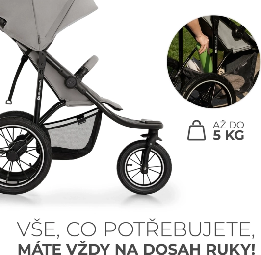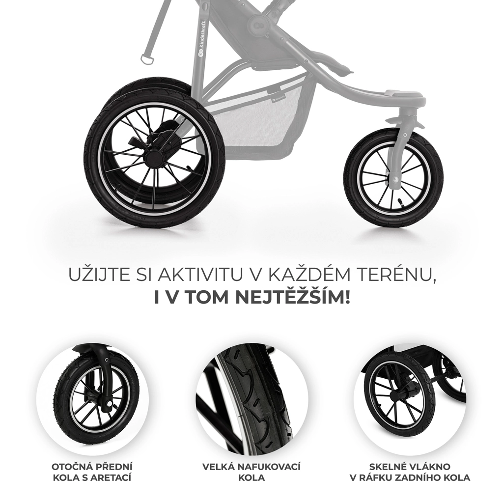 KINDERKRAFT HELSI 2 is een sportieve all-terrain kinderwagen, ontworpen voor soepel rijden op asfalt en bospaden. Drie grote, met lucht gevulde wielen met uitstekende vering en met glasvezel verstevigde achterwielen zorgen voor stabiliteit en comfort voor kind en ouder. Het stevige stalen frame, de gemakkelijk te bedienen rem en veiligheidsfeatures, waaronder 5-punts gordels en een veiligheidsbeugel, geven een zeker gevoel bij iedere stap.