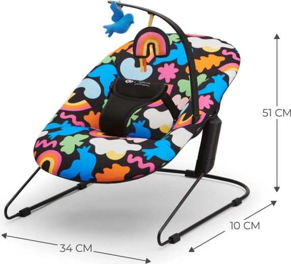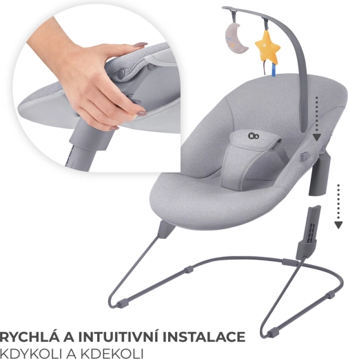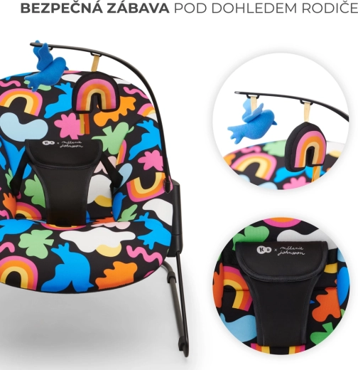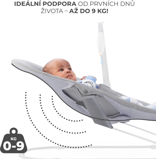 Het minimalistische babywipstoeltje Kinderkraft Calmee Happy Shapes voor pasgeborenen tot 9 kg biedt natuurlijk schommelen, een zachte ergonomische zitting en veilige driepuntsriemen. Dankzij de lichte en stabiele constructie, de gemakkelijk afneembare hoes en de speelboog met speeltjes stelt het je baby gerust en houdt het hem bezig, terwijl jij je handen vrij hebt. Het kan worden gekoppeld aan de stoelen LIVY of IGEE om zonder gereedschap een hoog wipstoeltje te creëren.