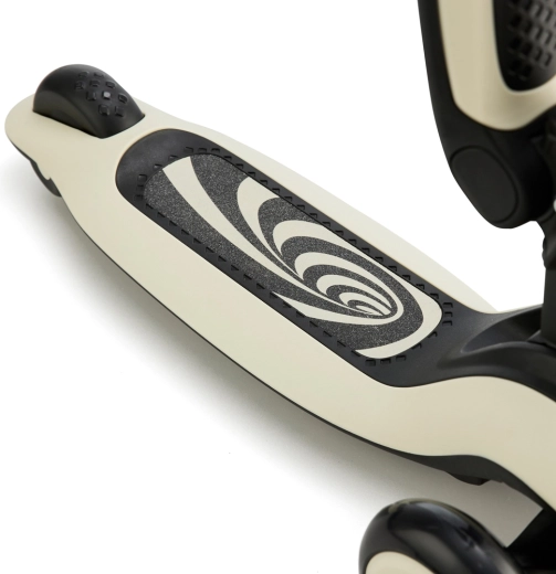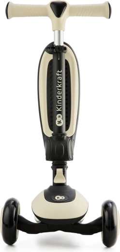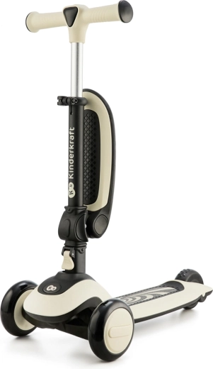 KINDERKRAFT HALLEY verenigt plezier, comfort en veiligheid in één slimme oplossing. Schakel in een oogwenk van loopfiets naar driewielige step – til simpelweg het geïntegreerde zadel op of laat het zakken. Twee grote voorwielen met LED-verlichting verhogen de zichtbaarheid en geven extra flair, terwijl het lage, antislip deck en de achterrem stabiliteit en vertrouwen bieden aan beginnende rijders.