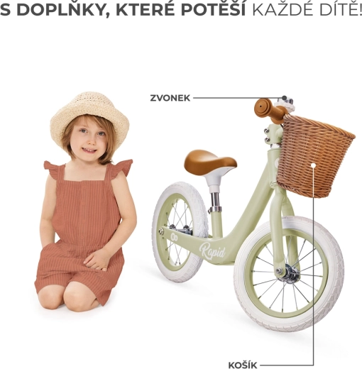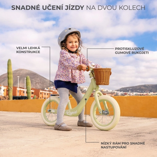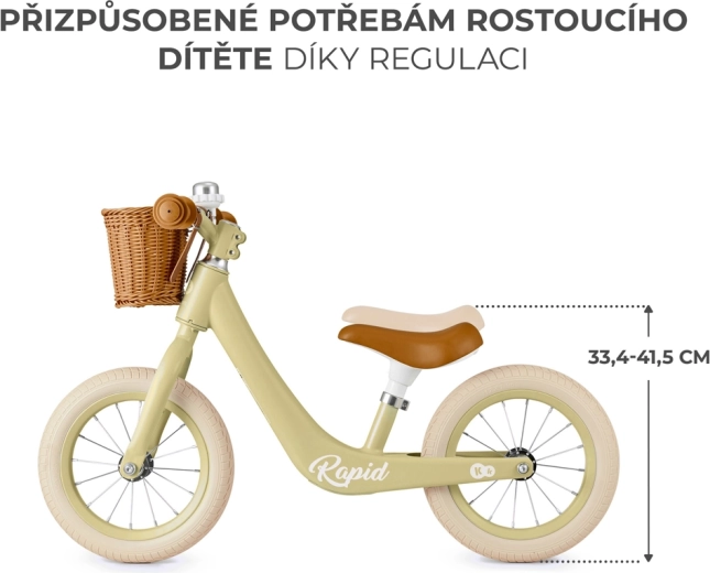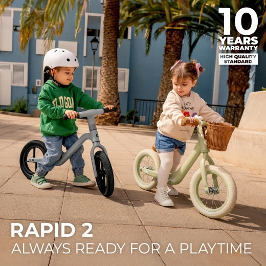 Ontdek het plezier van de eerste ritjes met de KINDERKRAFT RAPID 2 Savannah Green. De retro look met praktisch mandje valt meteen in de smaak, terwijl de doordachte constructie de ontwikkeling van balans en motoriek ondersteunt. Dankzij het lichte frame van magnesiumlegering weegt de fiets slechts ca. 3,7 kg, is hij gemakkelijk te dragen en uitzonderlijk duurzaam.