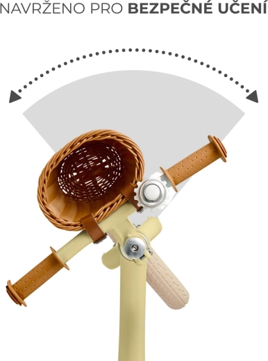 De grote rubberen wielen met lagers dempen oneffenheden uitstekend en zorgen voor een soepele rit op zowel trottoir als bospad. Het verstelbare zadel (33,5–41,5 cm) past zich aan snel groeiende kinderen aan en het laag geplaatste frame maakt opstappen ook voor kleinere rijders eenvoudig. De beperking van de stuuruitslag beschermt het kind tegen plotseling, ongecontroleerd insturen en de antislip rubberen handvatten garanderen een zekere grip.