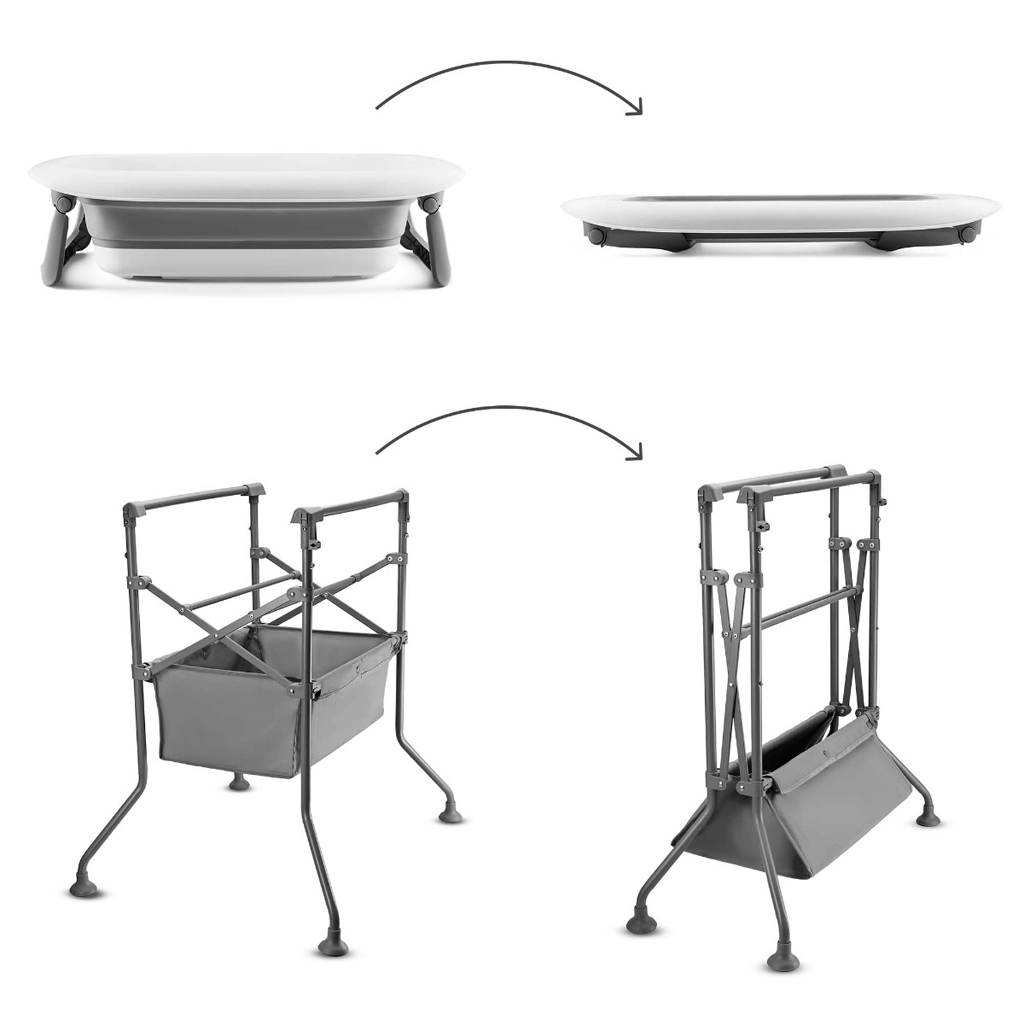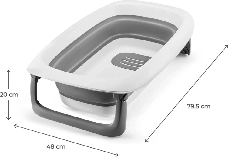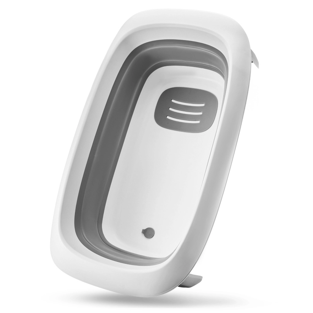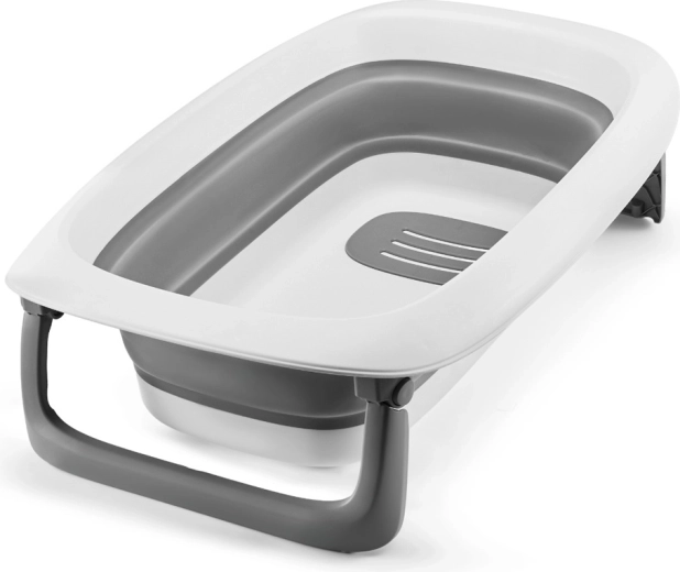 Het badje met siliconen bodem vouwt in enkele seconden plat. Een uitstekende keuze voor kleine badkamers, reizen en eenvoudig opbergen na het badderen.