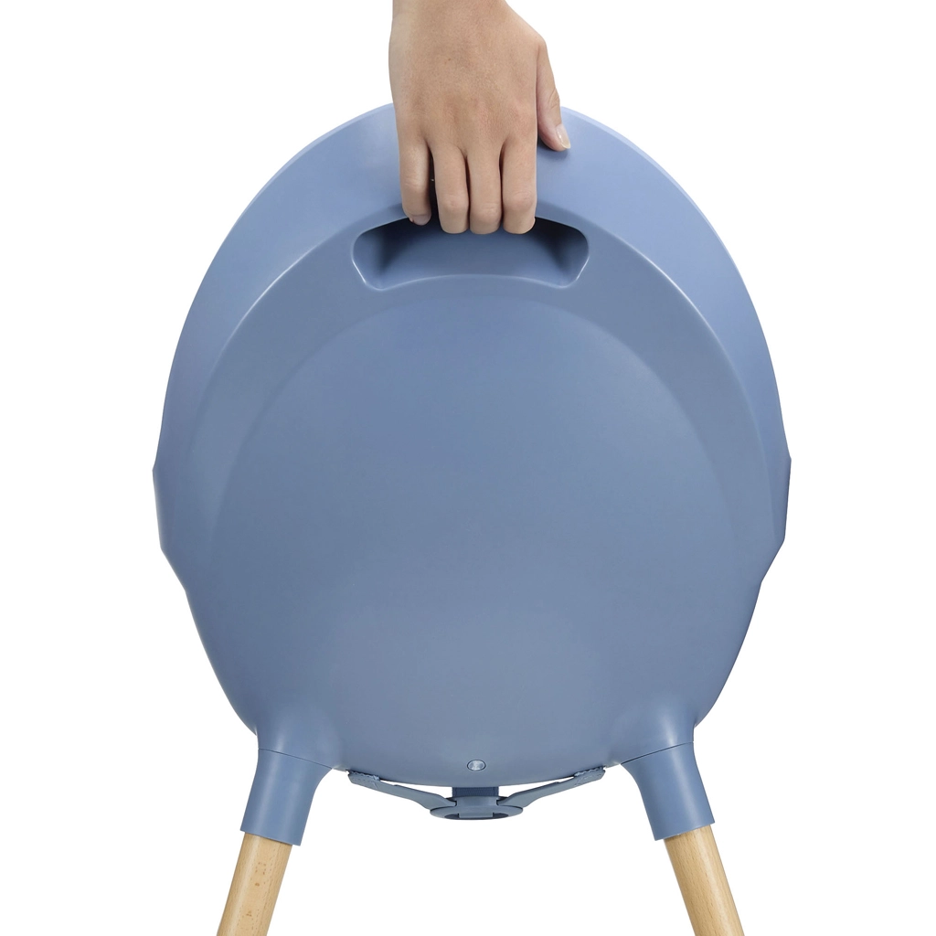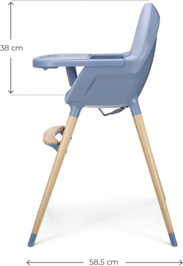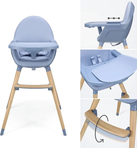 Stabiele beukenhouten poten met antislipuiteinden, een 5-punts veiligheidsgordel en een tussenbeenbeugel zorgen voor een hoog veiligheidsniveau. Een ergonomische rugleuning, een brede en diepe zitting en een verstelbare voetensteun bieden comfort tijdens het eten en spelen. De geïntegreerde handgreep in de rugleuning maakt dragen met één hand gemakkelijk.