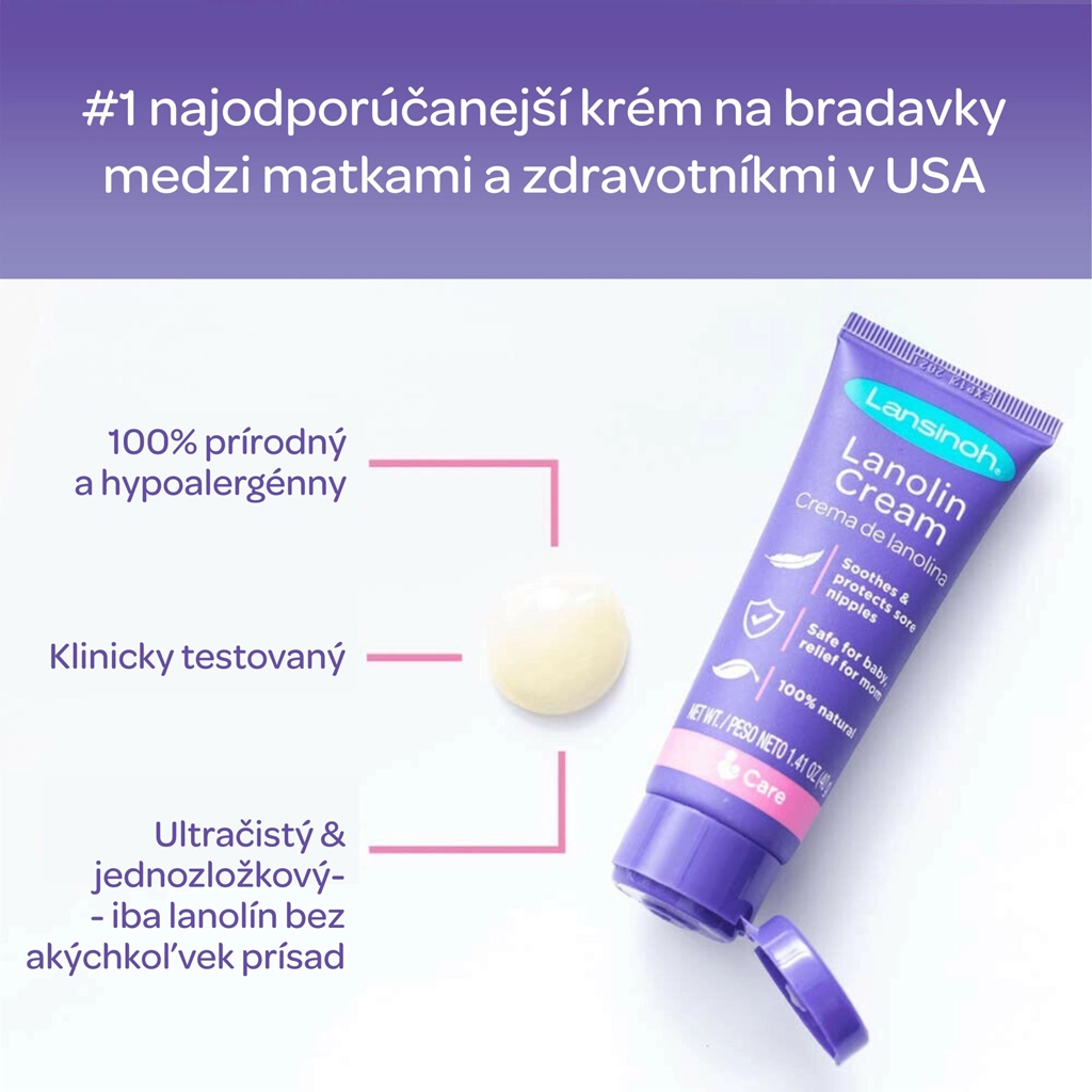 Bevat uitsluitend ultrazuivere lanoline, zonder parfum en conserveermiddelen. Veilig voor de baby – afwassen vóór het voeden is niet nodig.