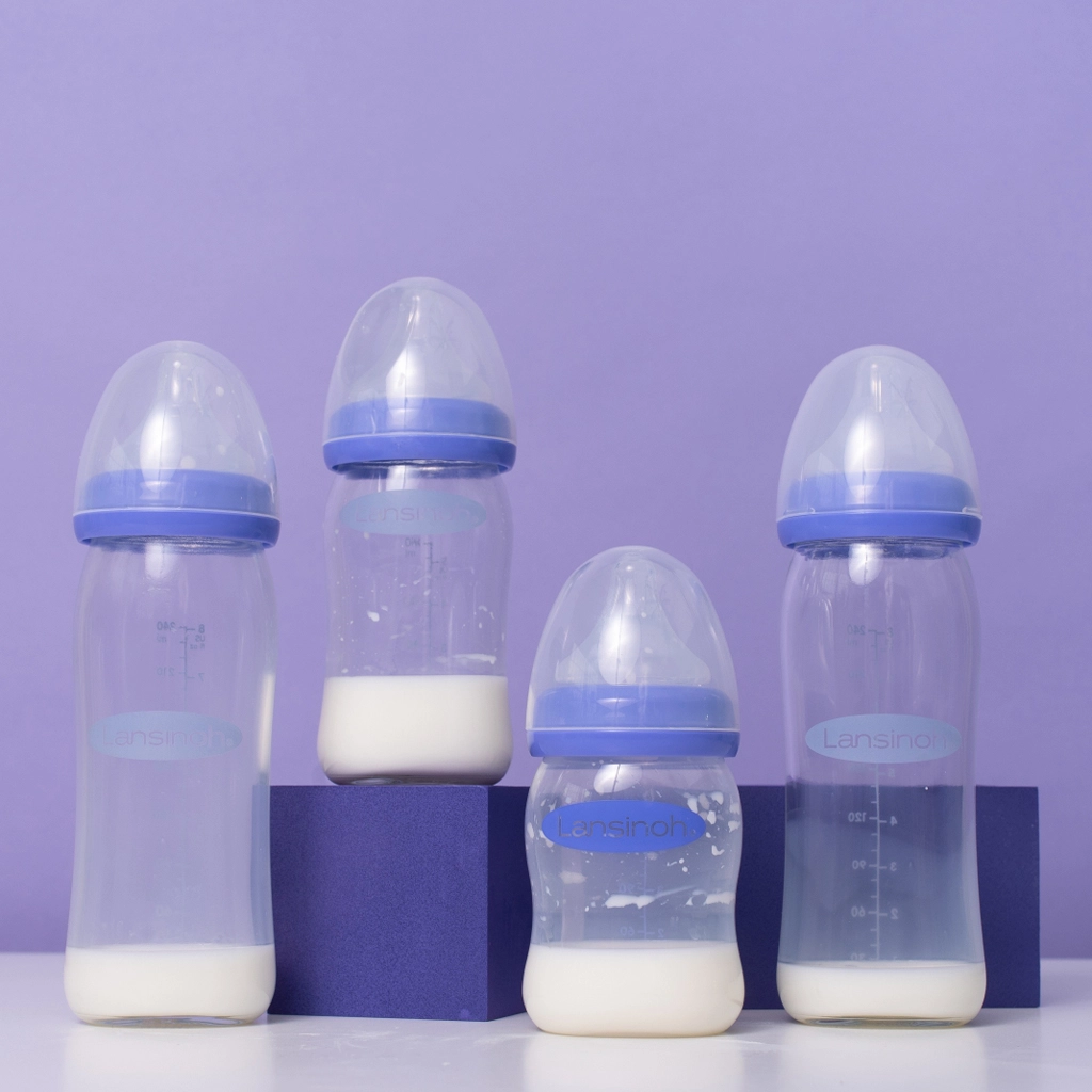 De glazen fles van Lansinoh met de unieke NaturalWave-speen is ontworpen op basis van meer dan 50 jaar onderzoek naar het zuiggedrag van baby’s. De speen respecteert de drie sleutelfasen van zuigen – aanhappen, peristaltische tongbeweging en slikken – en helpt zo de juiste techniek te behouden bij de overgang tussen borst en fles.