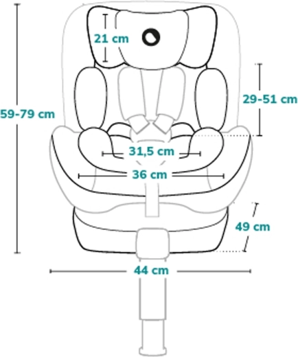 Installatie is zeker en snel dankzij ISOFIX-connectoren en de steunpoot. Kinderen kunnen achterwaarts rijden tot 105 cm, wat wordt beschouwd als de veiligste manier van vervoer. De viervoudige hellingsverstelling van de rugleuning helpt voorkomen dat het hoofdje wegzakt tijdens het slapen, en de geïntegreerde verstelling van de hoofdsteun met EPS en de gordels zorgt voor een precieze pasvorm op elke hoogte.