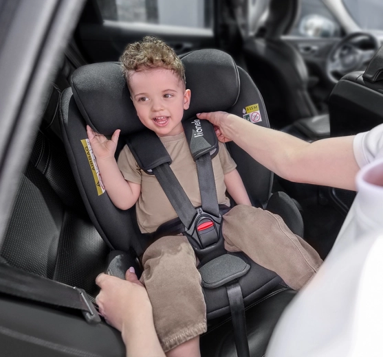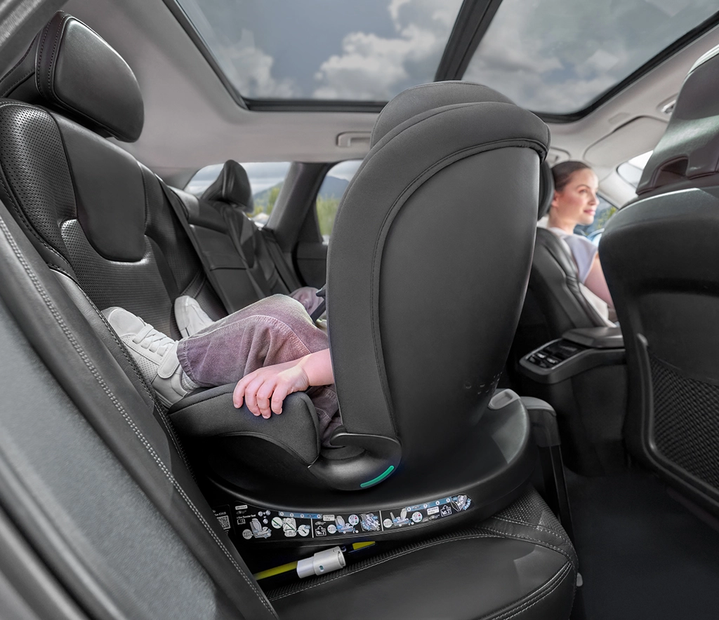 De draaibare basis laat je het autostoeltje naar de deur draaien, zodat je je kind snel en correct kunt vastmaken – zonder onnodig bukken.