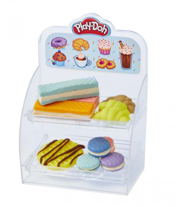 Verander de speelhoek in een koffiebar met Play-Doh Kleurrijke Koffiebar! Het turquoise apparaat met hendel perst een “drankje” in het bekertje, bij het uitgiftepunt versier je het met luchtige “slagroom” en met de vormpjes maak je heerlijk ogende zoetigheden. Zet alles daarna in de transparante standaard zoals in een echte vitrine.