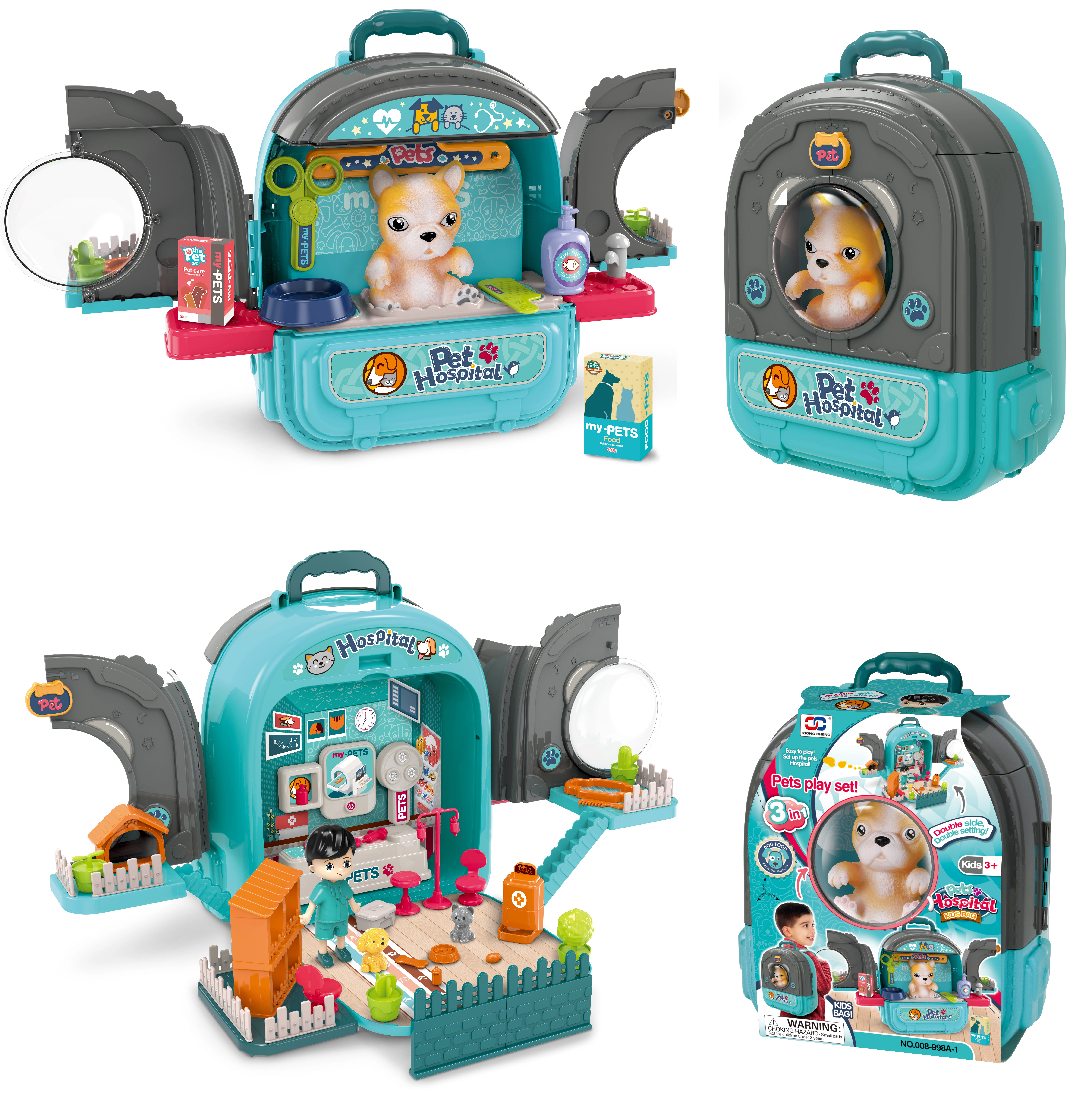 Het dierenziekenhuis in rugzak 3-in-1 blauw is het ideale speelgoed voor kleine dierenartsen vanaf 3 jaar. De slimme oplossing combineert een draagbare praktijk, rugzak en praktische opbergbox. Kinderen kunnen realistisch voor dieren zorgen, “medicijnen” toedienen en zorgzaamheid en empathie oefenen.