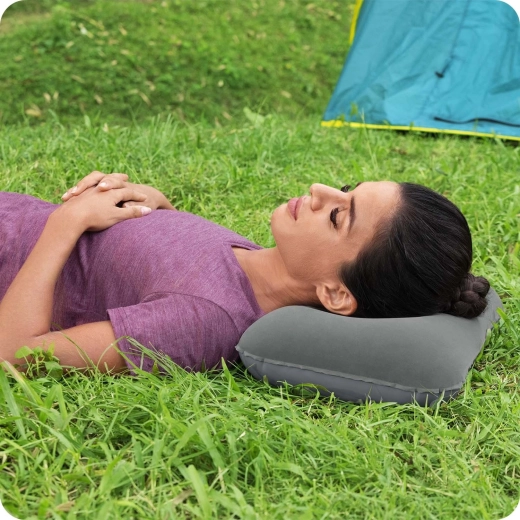 Het kussen is in een handomdraai opgeblazen, na gebruik laat je het eenvoudig leeglopen en vouw je het compact op. Geschikt voor in de tent, op de camping, in het vliegtuig of de auto en een perfecte aanvulling op elke opblaasbare matras of slaapmat.