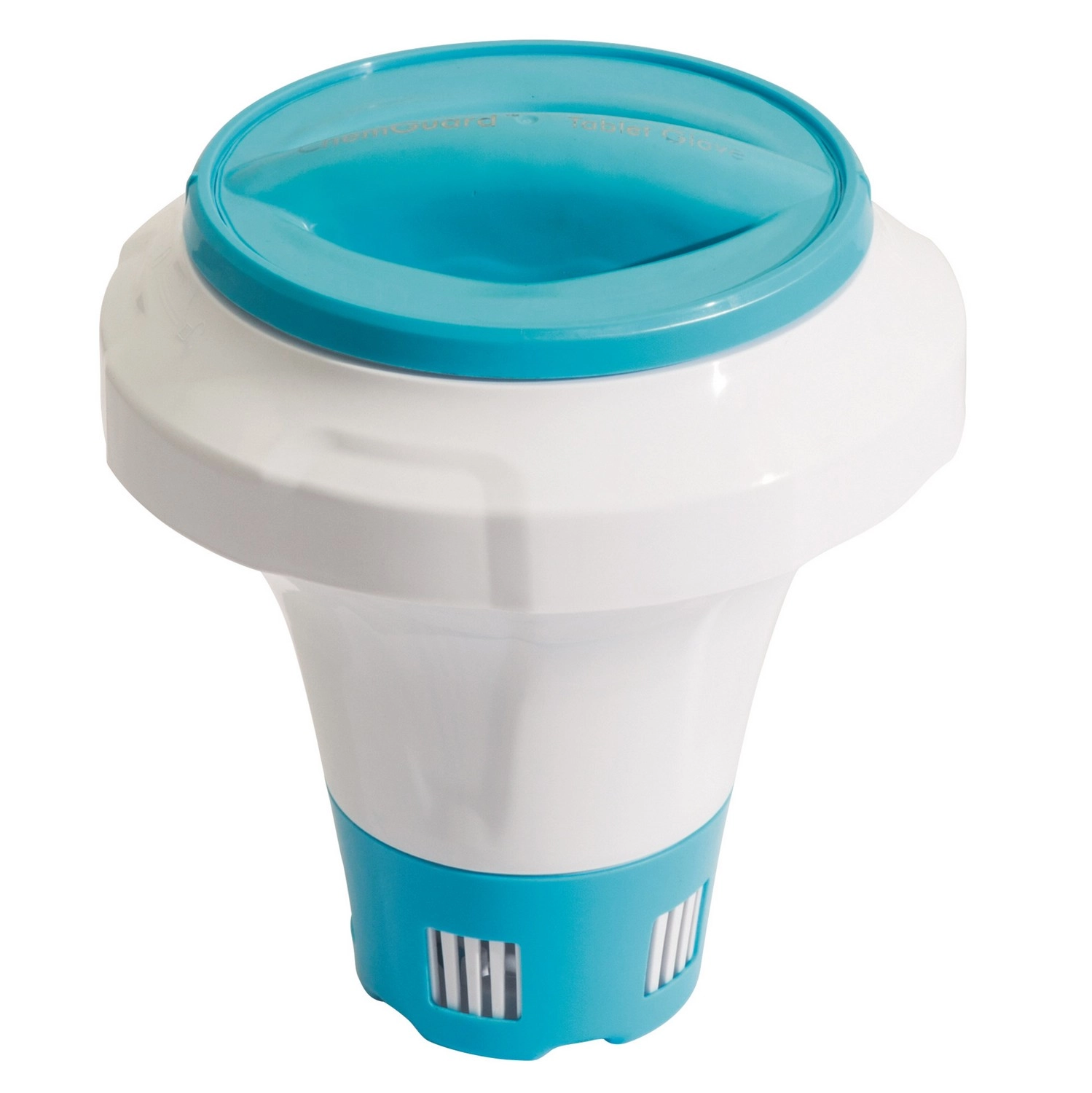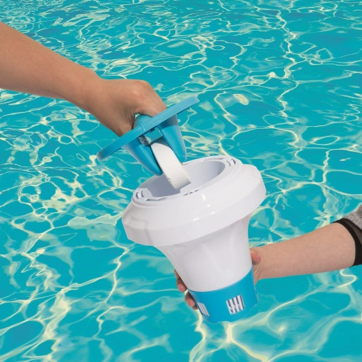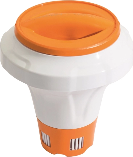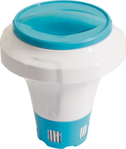 De praktische drijvende chemiedispenser van BESTWAY zorgt voor een veilige en gelijkmatige desinfectie van het water in uw zwembad. Dankzij de regelbare ring stelt u eenvoudig de doseerintensiteit in, de rubberen handgreep beschermt uw handen bij het hanteren en het slijtvaste polypropyleen garandeert een lange levensduur. Geschikt voor chloor- of broomtabletten tot een diameter van 7,6 cm.