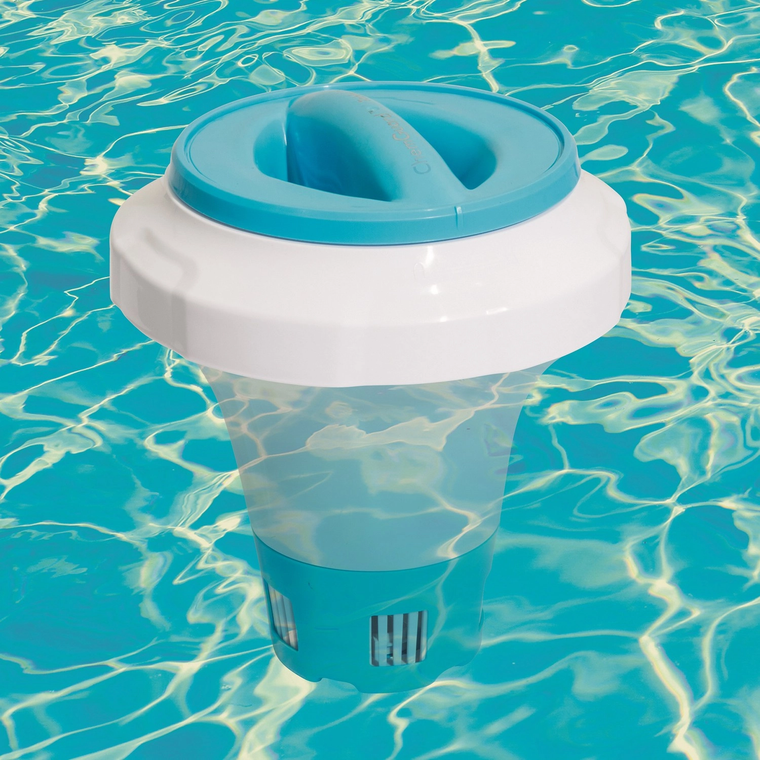Houd het water in uw zwembad kristalhelder en hygiënisch veilig met de drijvende BESTWAY-dispenser. Plaats eenvoudig een tablet onder de dop en de dispenser geeft de werkzame stof geleidelijk af aan het water. De drijver is gemaakt van niet-corrosief en duurzaam polypropyleen, waardoor hij licht is, stabiel op het wateroppervlak blijft drijven en bestand is tegen zonlicht en chemicaliën.