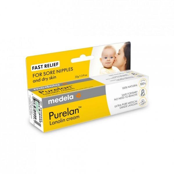De lanolinezalf Medela Purelan biedt snelle verlichting voor gevoelige en gebarsten tepels en verzorgt effectief de droge, geïrriteerde huid. Het is 100% natuurlijk, gemaakt van ultrazuivere lanoline van farmacopeekwaliteit, zonder toevoegingen en conserveermiddelen, en is veilig voor de baby – afspoelen vóór het voeden is niet nodig.