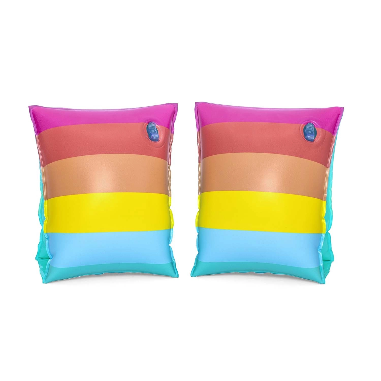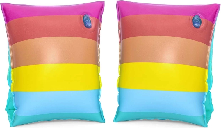 Gemaakt van stevig vinyl (PVC) van het merk Bestway, ontworpen voor eenvoudig opblazen en comfortabel dragen aan beide armen. Ideaal voor in het zwembad, aan zee en op zomervakantie.