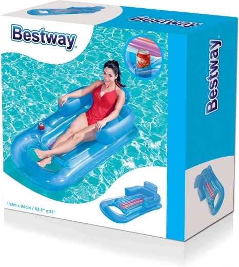 Het opblaasbare Bestway-ligbed is een uitstekende keuze voor ontspanning aan het water en op het strand. Dankzij de hoge rugleuning, geïntegreerde armleuningen en het gevormde hoofdkussen ondersteunt het comfortabel je rug en hoofd. De praktische bekerhouder laat je genieten van rustmomenten zonder uit het water te hoeven komen.