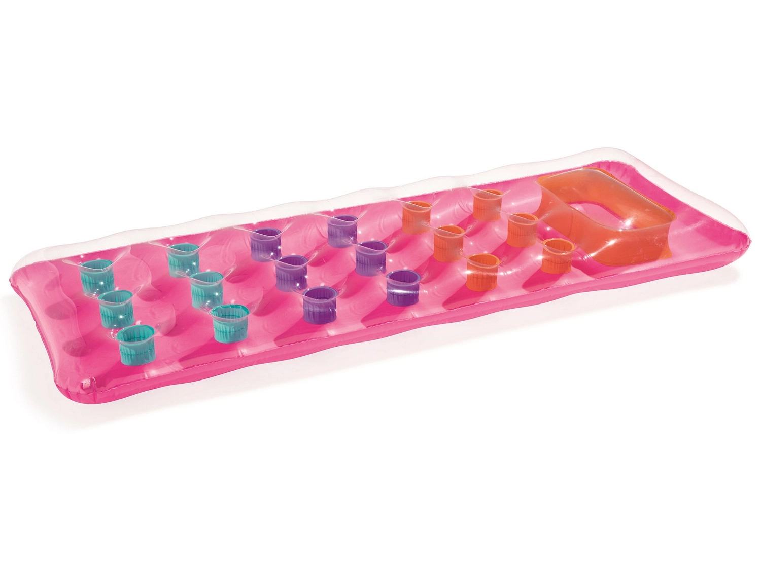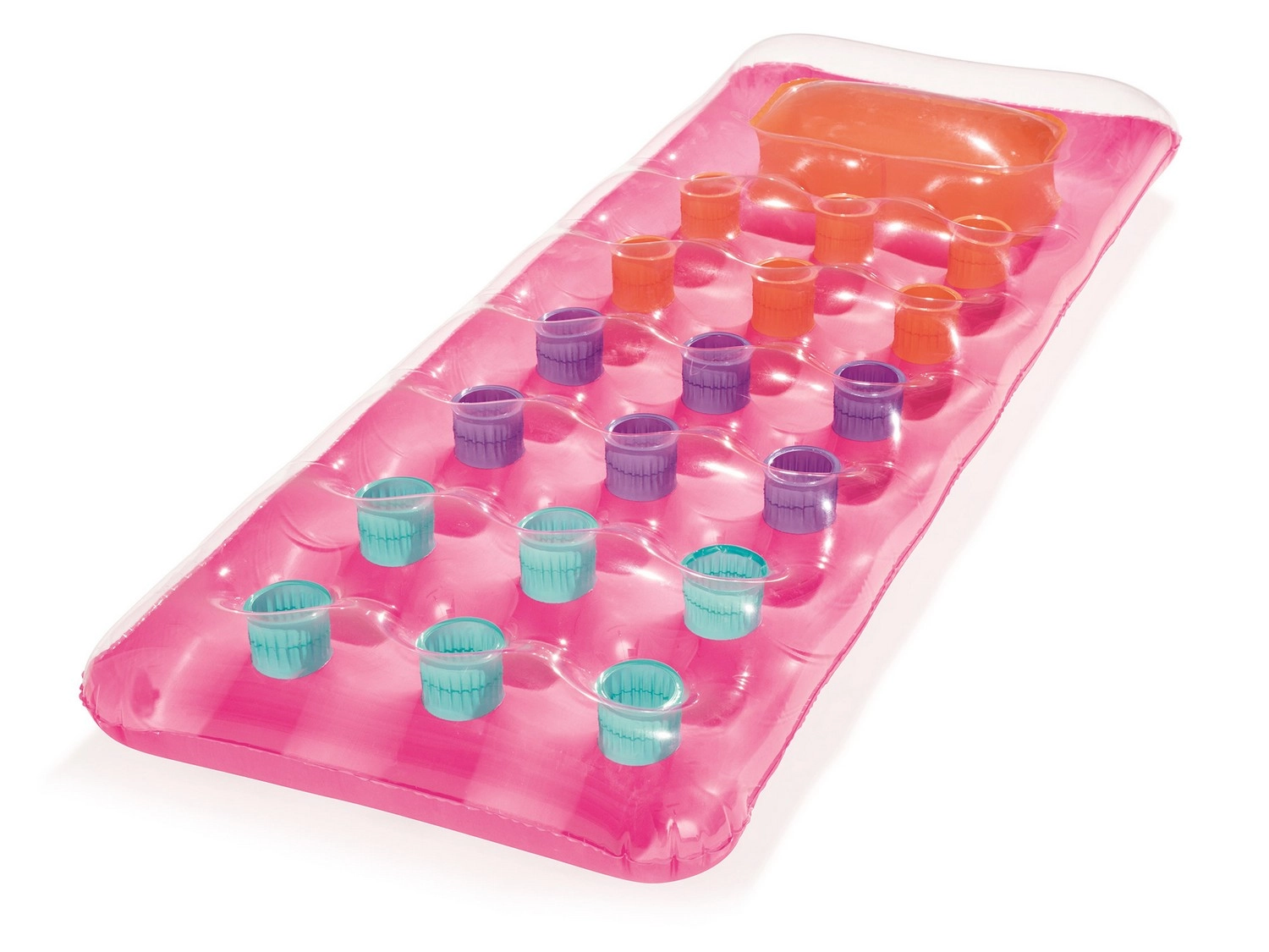 Het stijlvolle opblaasbare luchtbed met transparant kijkvenster ter hoogte van het kussen is ideaal om te relaxen in het zwembad, aan zee of op het meer. Dankzij de meerkameropbouw en stabiele i‑beam constructie draagt het comfortabel het lichaam en behoudt het zijn vorm. Het lichte ontwerp is handig bij vervoer en oppompen, terwijl de afmetingen van 188 × 71 cm royale ruimte bieden om te ontspannen.